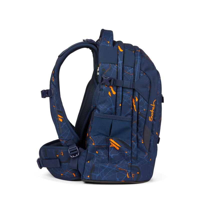 satch pack - - - satch entlastet und wächst mit: Aus dem Bergsport auf den Schülerrücken: Das satch Tragesystem garantiert die Verlagerung des Gewichts von den Schultern auf den stabilen Beckenbereich. Passgenaue Einstellung von 1,40 m – 1,80 m.