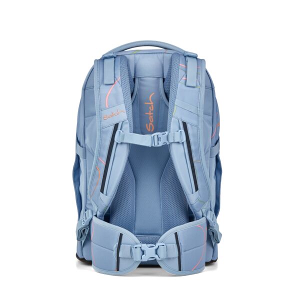 Aus dem Bergsport auf den Schülerrücken: Das satch Tragesystem garantiert die Verlagerung des Gewichts von den Schultern auf den stabilen Beckenbereich.