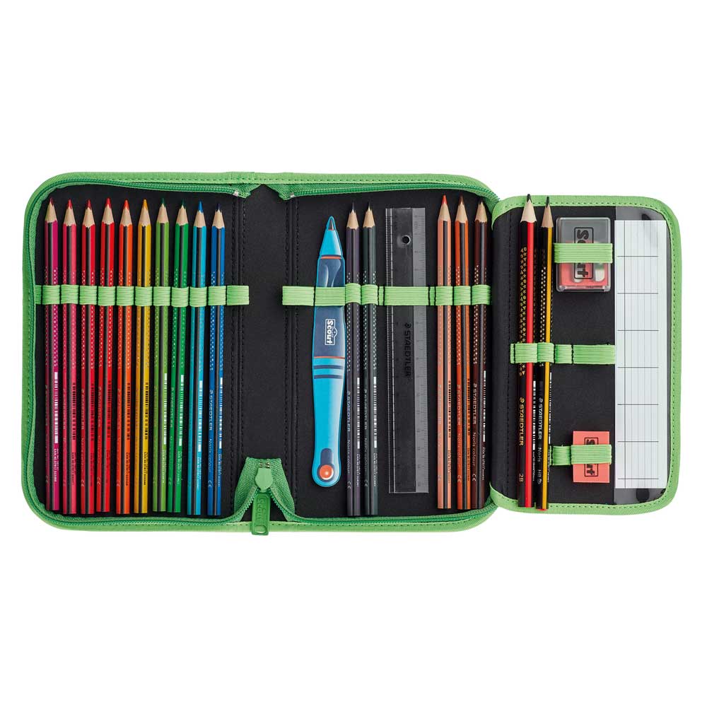 Der schlanke Neo ist der perfekte Begleiter. Er ist ergonomisch, hat einen festen Korpus und bietet beste Rundumsicht dank flachem Deckel. Zudem sorgt er mit retroreflektierenden und fluoreszierenden Flächen nach DIN 58124 für besonders gute Sichtbarkeit. Das Beste aber: Sportbeutel, Federmäppchen mit Staedtler Qualitätsbuntstiften, Schlamperetui, 2 süße Funny Snaps Move und 1 Anhänger sind inklusive.