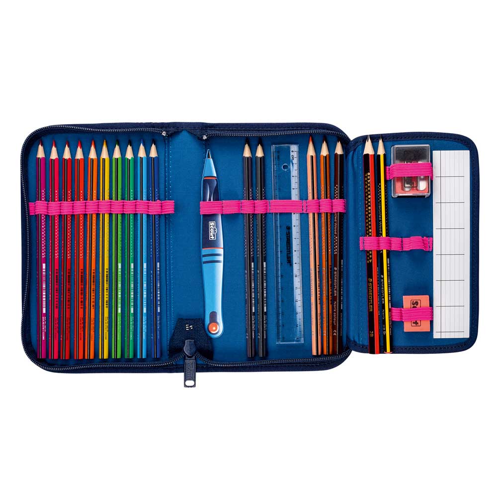 Der schlanke Neo ist der perfekte Begleiter. Er ist ergonomisch, hat einen festen Korpus und bietet beste Rundumsicht dank flachem Deckel. Zudem sorgt er mit retroreflektierenden und fluoreszierenden Flächen nach DIN 58124 für besonders gute Sichtbarkeit. Das Beste aber: Sportbeutel, Federmäppchen mit Staedtler Qualitätsbuntstiften, Schlamperetui, 2 süße Funny Snaps Move und 1 Anhänger sind inklusive.