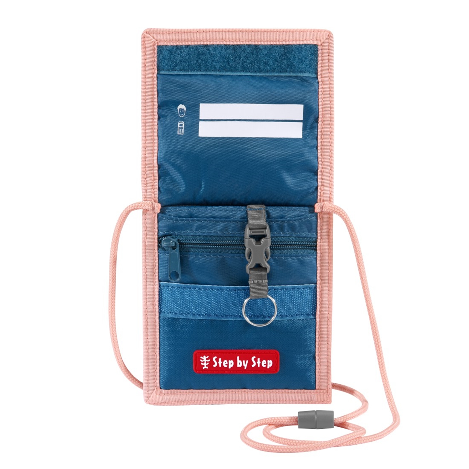 Das kleine Organisationstalent lässt sich bequem um den Hals hängen. Der Sicherheitsverschluss bietet die nötige Sicherheit und öffnet sich, sollte Dein Kind damit hängen bleiben.