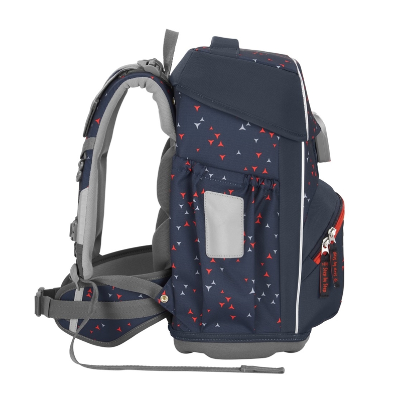 Das einzigartige ERGONOMIC BACK SYSTEM steht für die ergonomisch geschwungene und atmungsaktive Step by Step Rückenpassform. Der Rücken wird durch die ultraleichte, elastische Fiberglas-Rückenkonstruktion unterstützt. Durch die verstellbaren und ergonomischen Schultergurte und Lageverstellriemen lässt sich der Schulranzen perfekt einstellen. Für zusätzlichen Tragekomfort gibt es einen abnehmbaren, höhenverstellbaren Brustgurt sowie eine gepolsterte und abnehmbarer Hüftgurt.