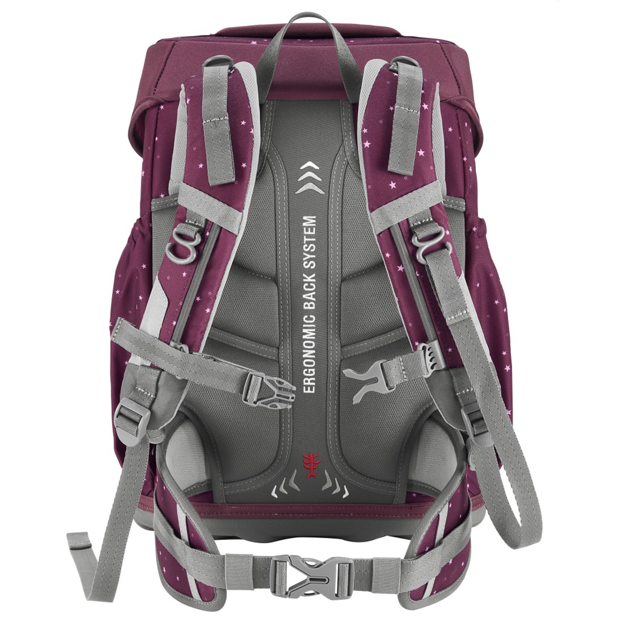Das einzigartige ERGONOMIC BACK SYSTEM steht für die ergonomisch geschwungene und atmungsaktive Step by Step Rückenpassform. Der Rücken wird durch die ultraleichte, elastische Fiberglas-Rückenkonstruktion unterstützt. Durch die verstellbaren und ergonomischen Schultergurte und Lageverstellriemen lässt sich der Schulranzen perfekt einstellen. Für zusätzlichen Tragekomfort gibt es einen abnehmbaren, höhenverstellbaren Brustgurt sowie eine gepolsterte und abnehmbarer Hüftgurt.