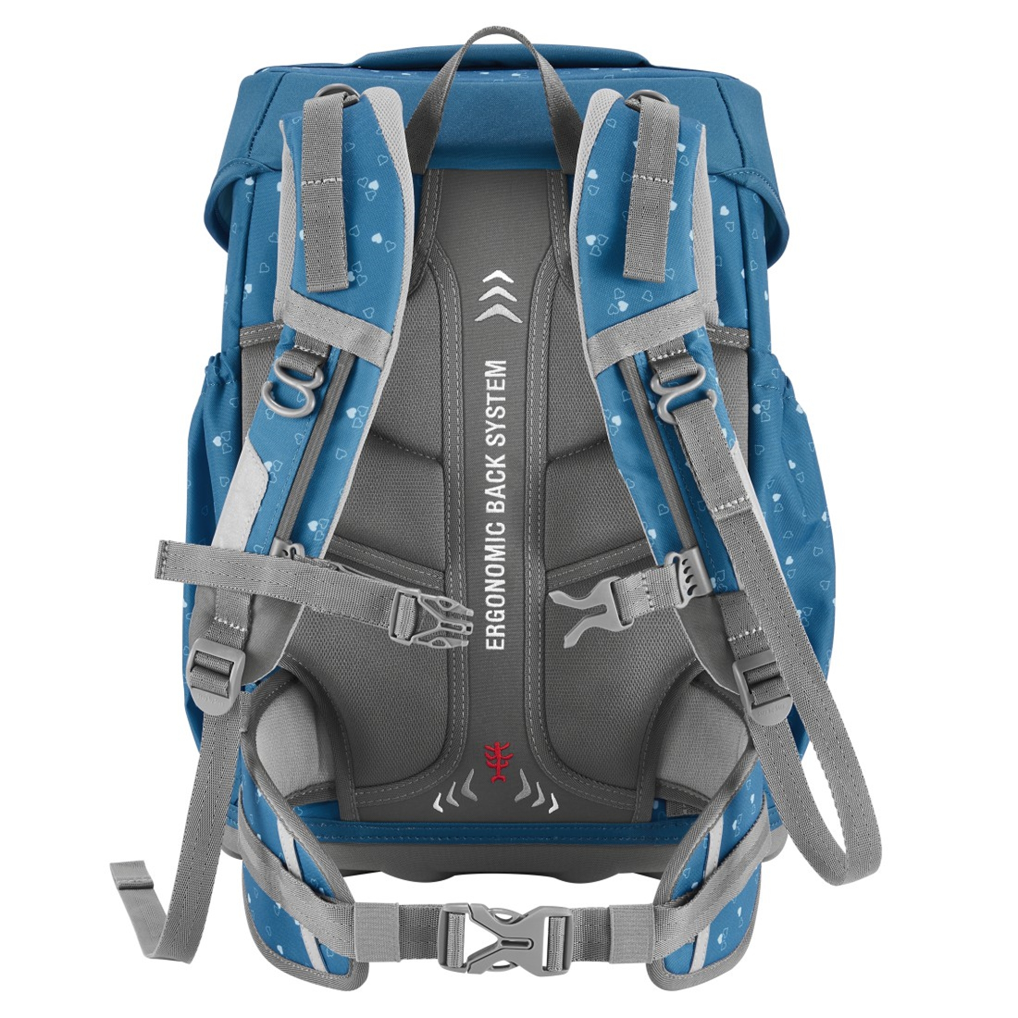 Das einzigartige ERGONOMIC BACK SYSTEM steht für die ergonomisch geschwungene und atmungsaktive Step by Step Rückenpassform. Der Rücken wird durch die ultraleichte, elastische Fiberglas-Rückenkonstruktion unterstützt. Durch die verstellbaren und ergonomischen Schultergurte und Lageverstellriemen lässt sich der Schulranzen perfekt einstellen. Für zusätzlichen Tragekomfort gibt es einen abnehmbaren, höhenverstellbaren Brustgurt sowie eine gepolsterte und abnehmbarer Hüftgurt.