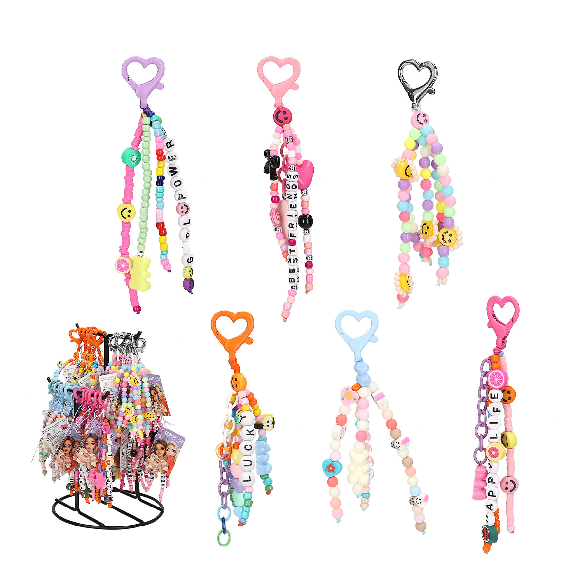 Die supercoolen TOPModel-Anhänger aus kunterbunten Perlen mit Herz-Karabiner pimpen jede Tasche oder den Schlüsselbund.