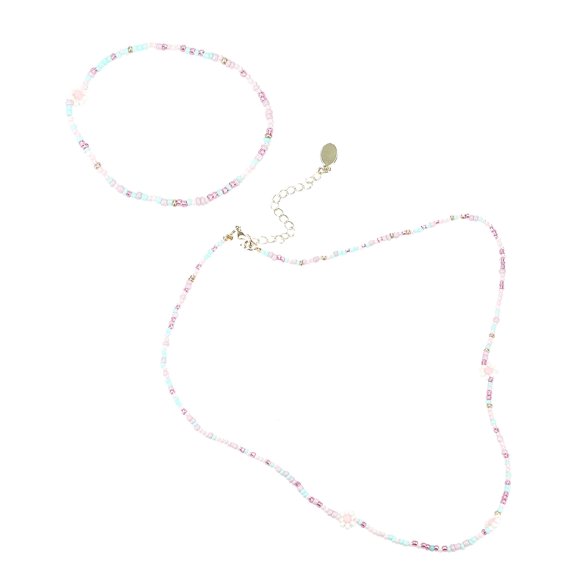 Das niedliche, sommerliche Schmuck-Set von TOPModel besteht aus einer Kette (40cm, um 5cm vestellbar) und einem elastischen Armband.