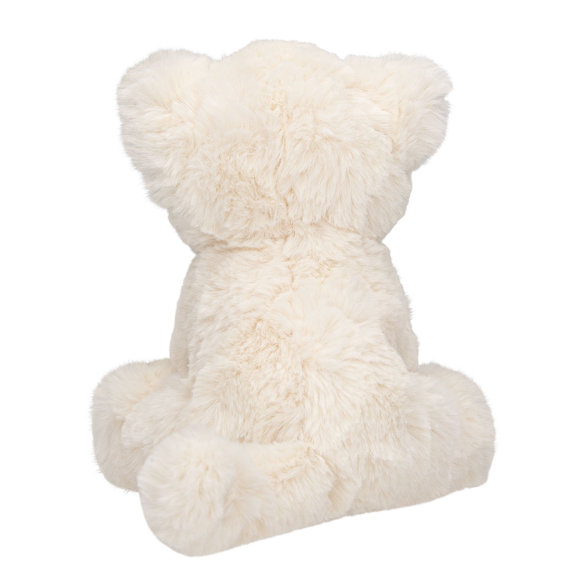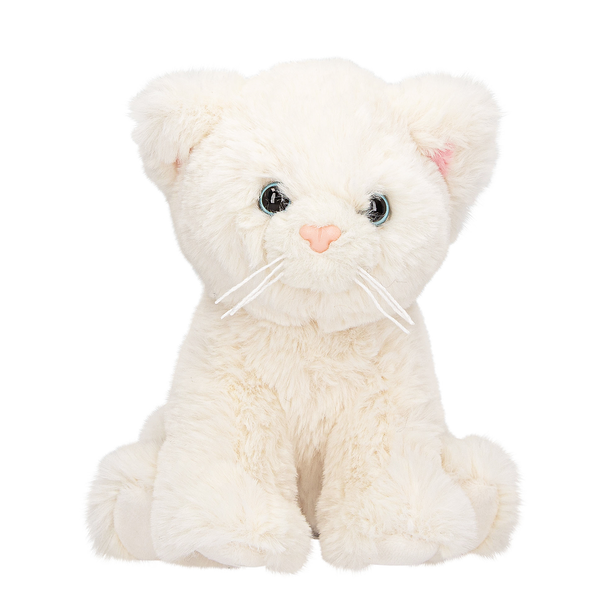 Die kleine Plüschkatze von TOPModel hat kuschelweiches weißes Fell, blaue Knopfaugen und eine rosa Nase aus Kunststoff.