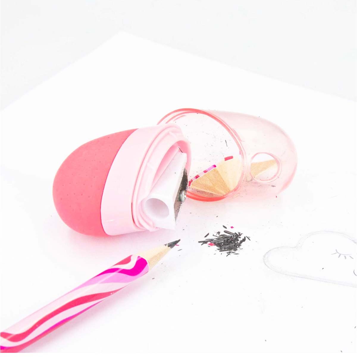 Der Radierer-Anspitzer von TOPModel in Herzform kann mit einer einfachen Drehung in eine längliche Form gebracht werden.