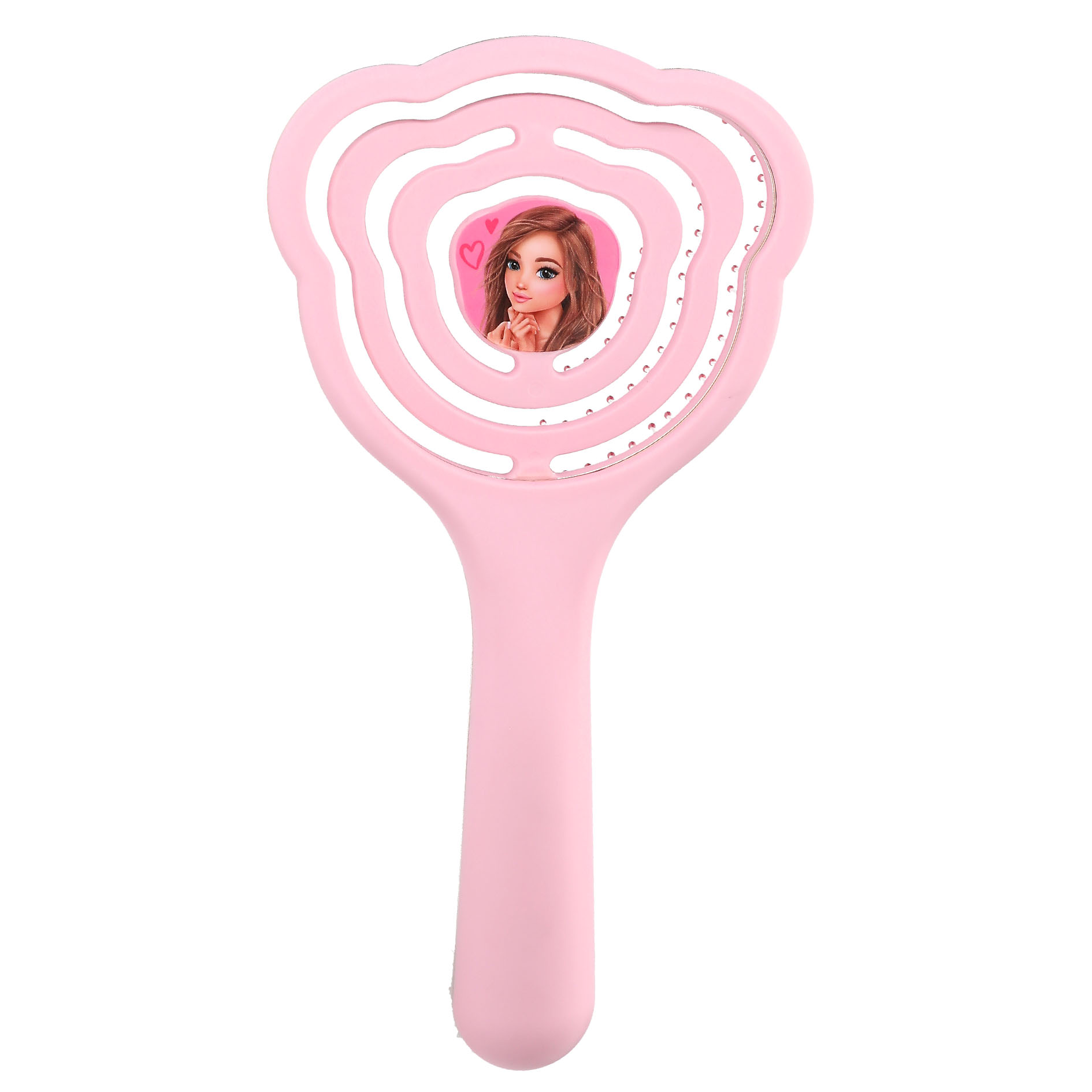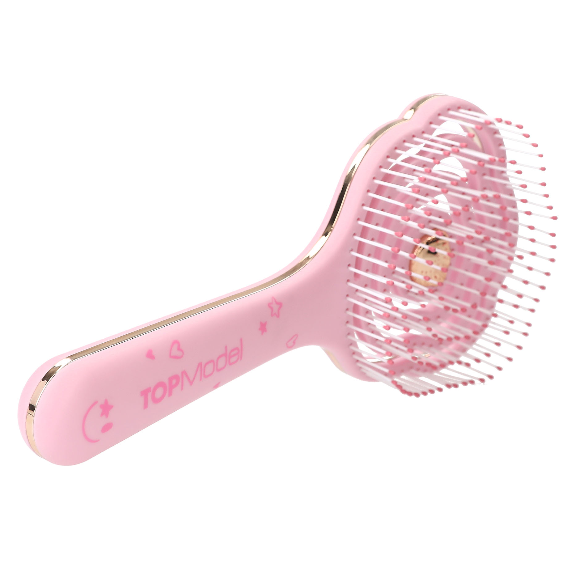 Die supersüße roséfarbene TOPModel-Haarbürste mit Bürstenkopf in Teddy-Form gibt nach innen federnd nach, sodass das Bürsten weniger ziept.