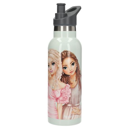 Die salbeigrüne TOPModel-Trinkflasche hat ein wunderschönes, romantisches Doppel-Modelmotiv und zarte Blüten und Schmetterlinge aufgedruckt. Mit grauem Trinkmodul.