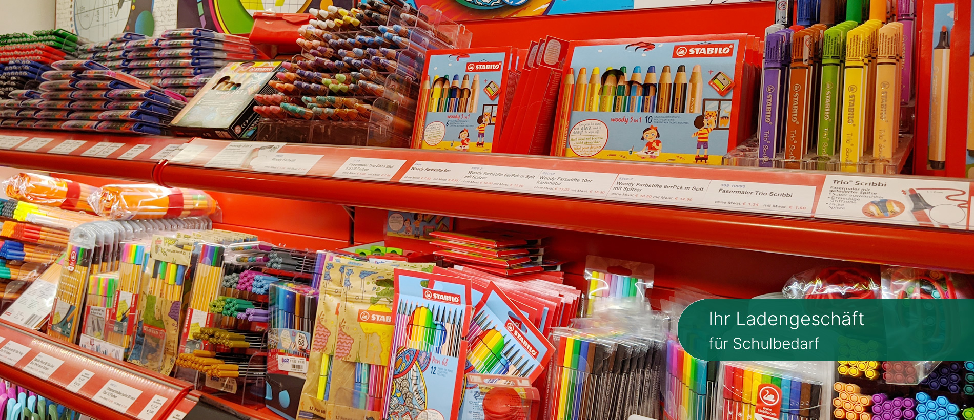 Auf über 400 m² Ladenfläche zeigen wir Ihnen ein breites Sortiment an Schulbedarf und Bürobedarf, Künstler- und Papeterieartikel von renommierten Marken. Sie brauchen fachliche und professionelle Beratung beim Kauf des ersten Schulranzen Ihres Kindes? Sie sind auf der Suche nach hochwertigen Schreibwaren oder Malbedarf? Wir finden die passenden Produkte für Sie und beraten Sie gerne persönlich in unserem Geschäft. Sie können uns auch hier eine Anfrage senden.