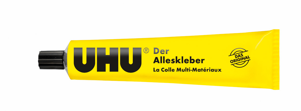 UHU Der Alleskleber ist der bewährte flüssige Kunstharzklebstoff für schnelle und glasklare Klebungen im Haushalt, Büro, beim Modellbau, Basteln usw. UHU Der Alleskleber klebt schnell und dauerhaft viele Materialien. Die Klebeverbindung bleibt kurzfristig nachregulierbar. Keine Papierwellung.