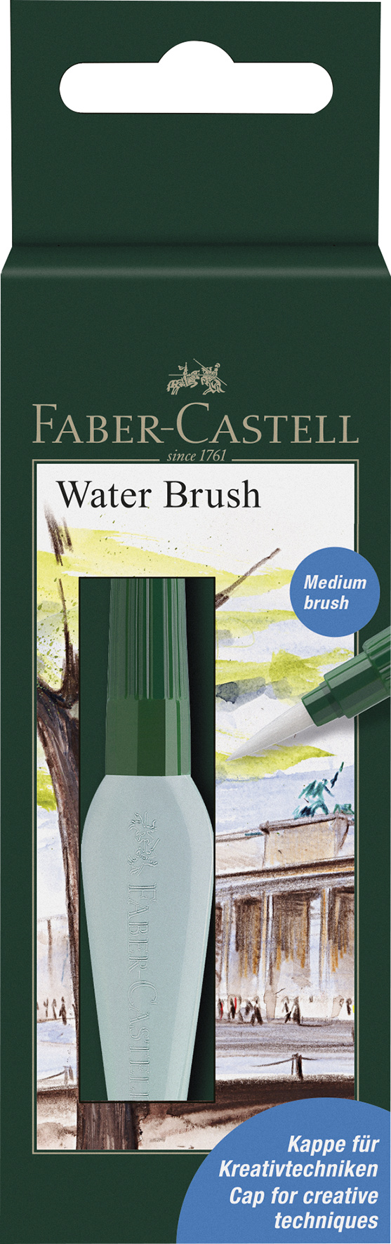 Aufschrauben, mit Wasser füllen, losmalen!; Super in Kombination mit Aquarellstiften sowie wasserlöslichen Farben; Geeignet für Lasur-, Nass- in-Nass- und Trockenpinseltechnik (Granulierung); Ideal für Urban Sketching; Kappe einsetzbar für Kratz- und Schabetechniken (sog. Kreditkartentechnik); Durch sanftes Drücken auf den Bauch des Pinsels läuft das Wasser in die Spitze; Wassertank mit 6 ml Fassungsvermögen; Pinselhaare aus hochwertigen Synthetikfasern; Größe: Medium